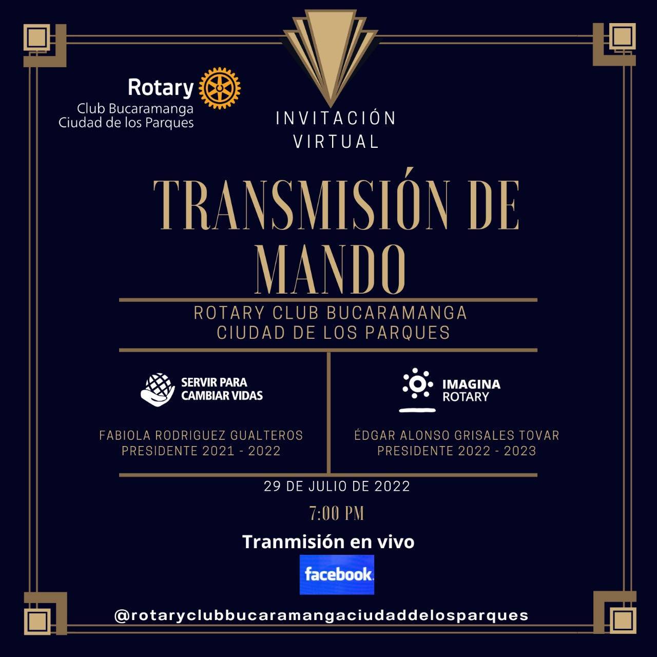 TRANSMISSÃO DE POSSE: Rotary Club de Tupã-Vanuire participará da Transmissão de Posse do Rotary Club Bucaramanga Ciudad de los Parques - Colômbia