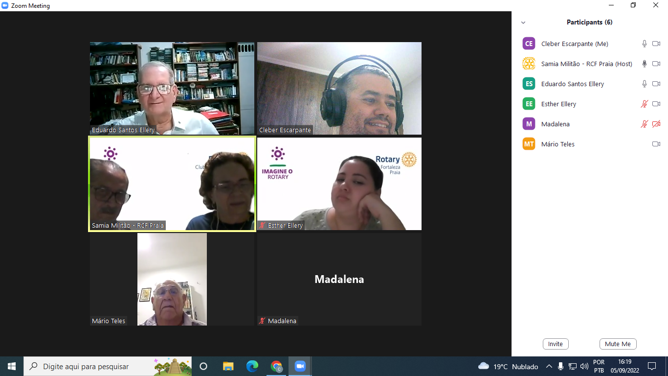 Rotary Club de Tupa-Vanuire participou nesta terça-feira às 19h30 da Reunião Online do Rotary Club de Fortaleza Praia - Ceará a Convite da Secretaria Samia. Ao final da reunião ocorreu companheirismo e a troca de informações sobre a poliomielite e de ideias sobre projetos e campanhas para o desenvolvimento de quadro associativo e de atividades para ampliar recusros junto aos clubes. Os presidentes dos clubes estão estudando a possibilidade de alguma atividade para a educação básica frente aos reflexos da pandemia na alfabetização escolar. Ao final da reunião concluiu os presidentes que mais reuniões serão posteriormente agendadas para a troca de novos conhecimento.
