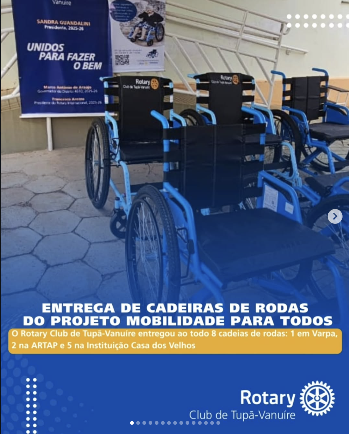 O Rotary Club de Tupã-Vanuíre realizou mais uma importante entrega de cadeiras de rodas através do projeto Mobilidade para Todos. Desta vez, foram doadas oito cadeiras, levando mais conforto e independência a quem precisa.