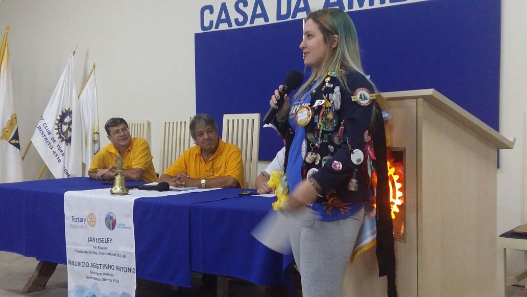 A jovem Ana Laura relatou aos companheiros do Rotary Club de Tupã Vanuire sua experiência como participante do intercâmbio de jovens.